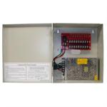 12V DC, 18CH Output 10AMP Supply Current Integral Surge Protection UL Underwriters, Laboratory Recognized Individual LED Power Indication Individual PTC Output Protection Shipping Weight 8 lbs Overall Dimensions:9.75"(L)x8.25"(D)x3.75(W) One Year Limited